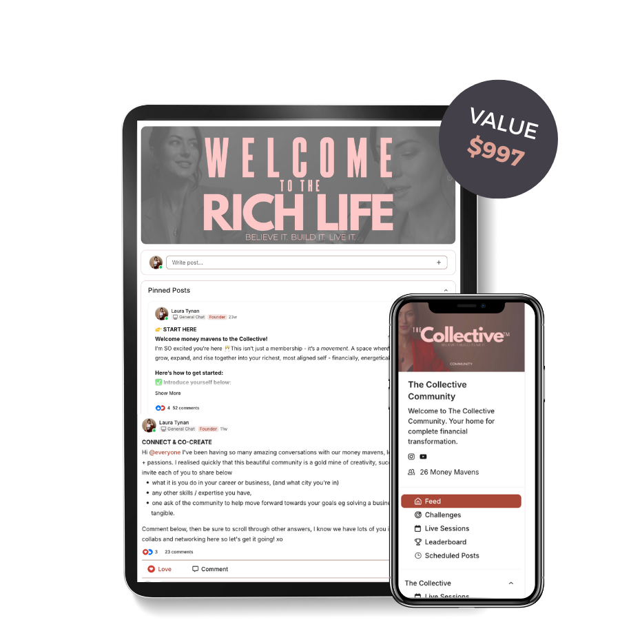 ✓ Guest masterclasses on living your richest life (emotional, spiritual, physical, financial & business)